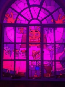 4. This stained glass abomination graces the window of a London tourist trap dedicated to what second-highest-grossing animated film franchise? Shrek