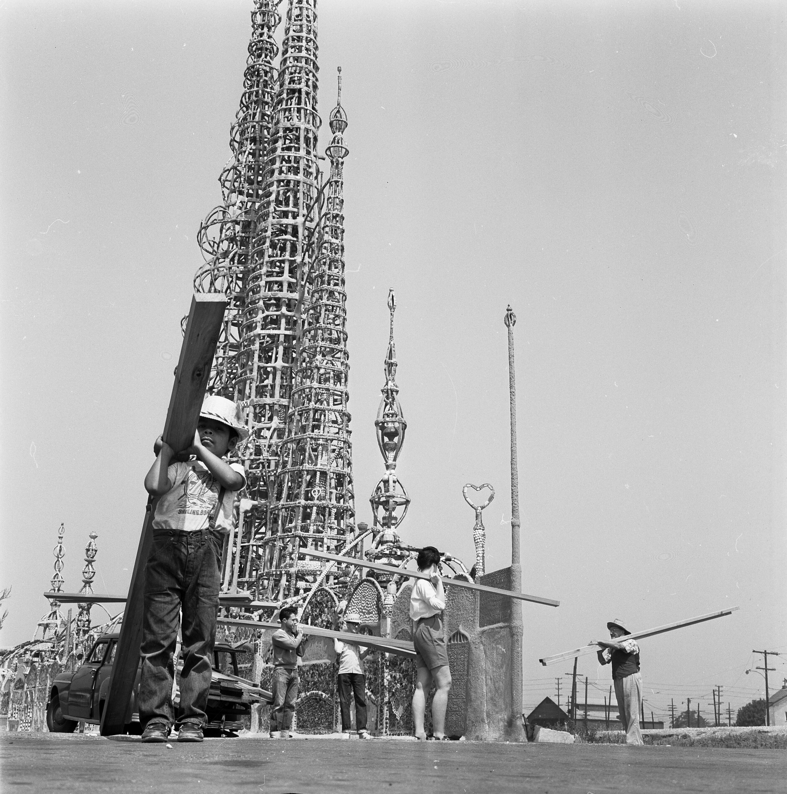 Unusual structures in Los Angeles built entirely by hand by Sabato “Simon” Rodia = WATTS TOWERS