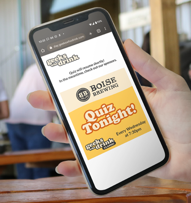 - Offer weekly specials, samples, bar spends, and swag to quizzers (street teams welcome)